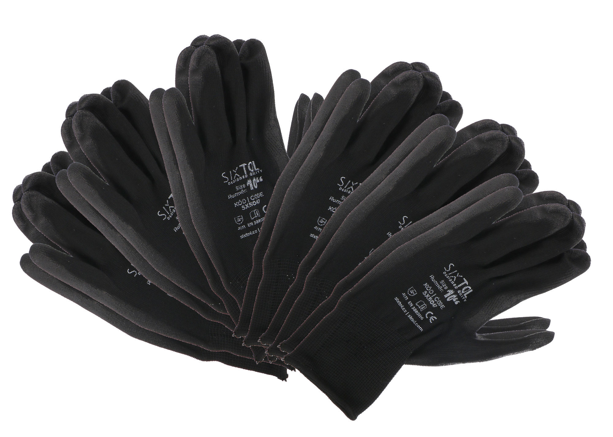 Rukavice pracovní z polyesteru polomáčené v PU GLOVE PE-PU 10, černé, vel 10", 6 párů